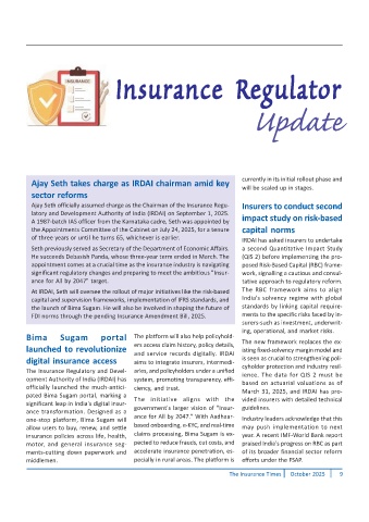 At IRDAI, Seth will oversee the rollout of major initiatives like the risk-based The RBC framework aims to align