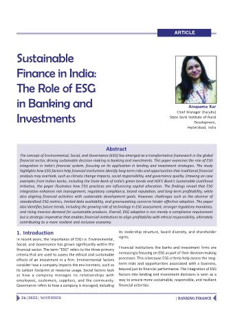 financial sector, driving sustainable decision-making in banking and investments. This paper examines the role of ESG
