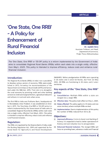 to develop various sectors of economy. RRBs were estab- 2025, 28 RRBs are functioning in 26 states and 2 union
