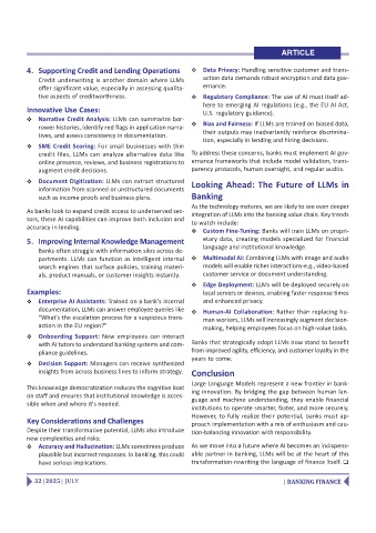 As banks look to expand credit access to underserved sec- integration of LLMs into the banking value chain. Key trends