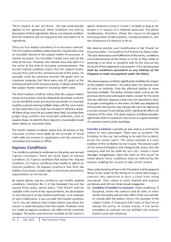 Condition, (2) Express conditions that modify or add to an insured, enabling the insurers to take certain actions.