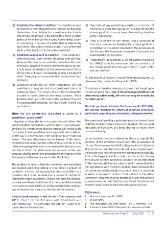 the insurer to reject liability only if the breach of the condition consider such claims in India from this point of view?