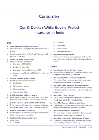 Name owner, contractor, subcontractors, consultants, Always buy the policy before the project commences,