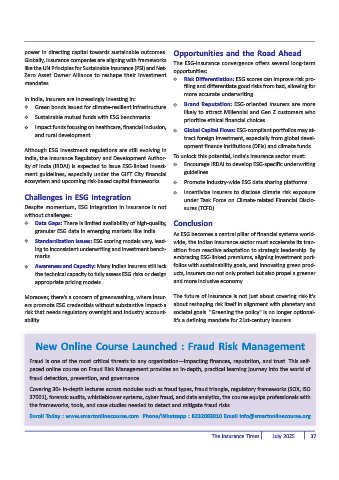 Standardization Issues: ESG scoring models vary, lead- wide, the Indian insurance sector must accelerate its tran-