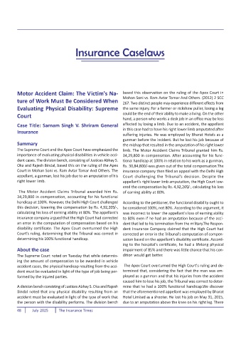 Case Title: Sarnam Singh V. Shriram General affected by losing a limb. Due to an accident, the appellant
