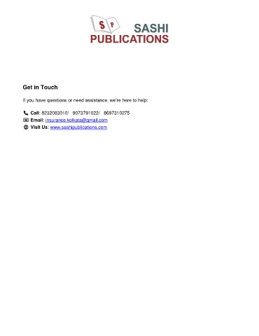 Get in Touch If you have questions or need assistance, we’re here to help: Call: 8232083010/ 9073791022/ 8697310275 Email: insurance.kolkata@gmail.com Visit Us: www.sashipublications.com