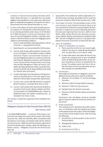 actions in Bond Forwards as users for hedging purpose NIL. The entire Obligatory Cession is to be placed with