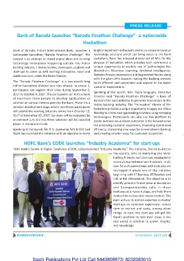 nationwide hackathon “Baroda Finathon Challenge”. The technology solutions which can bring value to the Bank