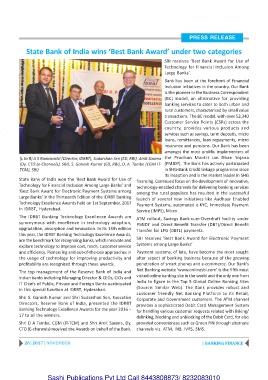 State Bank of India won the ‘Best Bank Award for Use of financing. Continued focus on the development of innovative,