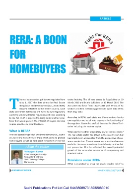 to the Act. RERA is expected to bring clarity and fair prac- According to RERA, each state and Union territory has its