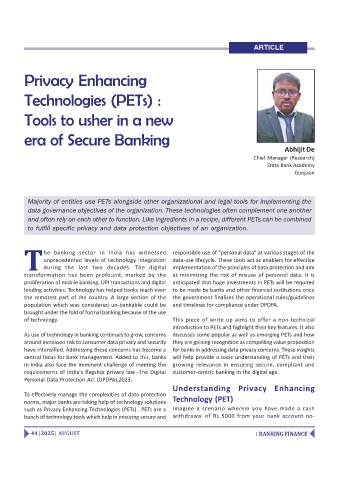 As use of technology in banking continues to grow, concerns discusses some popular as well as emerging PETs and how