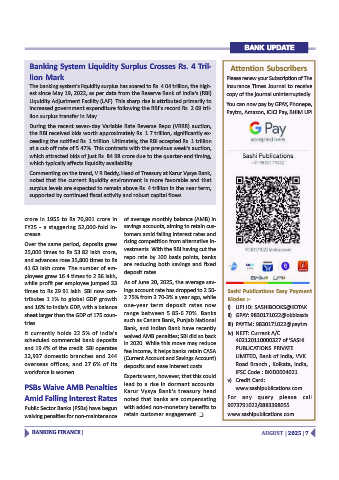 The banking system's liquidity surplus has soared to Rs. 4.04 trillion, the high- Insurance Times Journal to receive