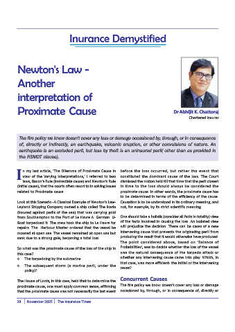 I n my last article, 'The Dilemma of Proximate Cause in before the loss occurred, but rather the event that