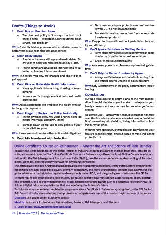 Donts (Things to Avoid) Term insurance is pure protection dont confuse