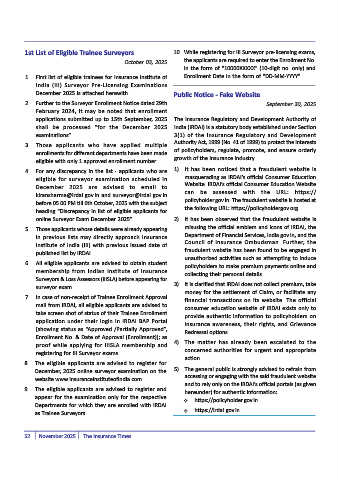 eligible for surveyor examination scheduled in masquerading as IRDAIs official Consumer Education