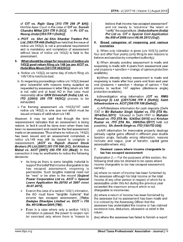 Ltd. [383 ITR 448 (Delhi)] has held that the issue of 6. Broad categories of reopening and various