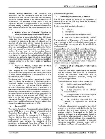 resolution process. Hence in the recent ordinance the The RP shall publish an invitation for expression of