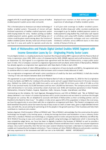bank in India. This is Company's second Co-origination Agreement with any Bank, before Bank of Maharashtra, PAISALO