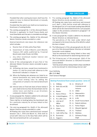 There shall be no lending below the benchmark rate 8. C. USD 64.37 19. B. Small Finance Bank