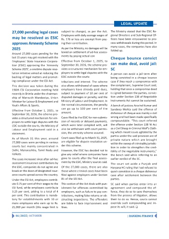 backlog of legal matters and promot- ESIC outside the courts being convicted in a cheque bounce