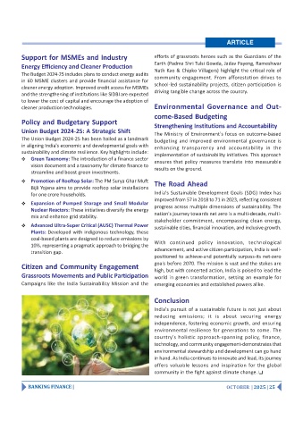 cleaner energy adoption. Improved credit access for MSMEs school-led sustainability projects, citizen participation is