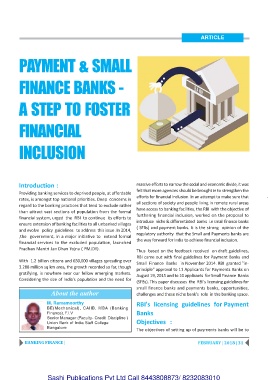 and evolve policy guidelines to address this issue .In 2014, ( SFBs) and payment banks. It is the strong opinion of the