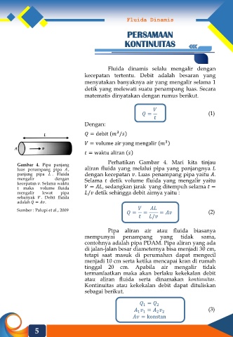 luas penampang pipa , aliran fluida yang melalui pipa yang panjangnya