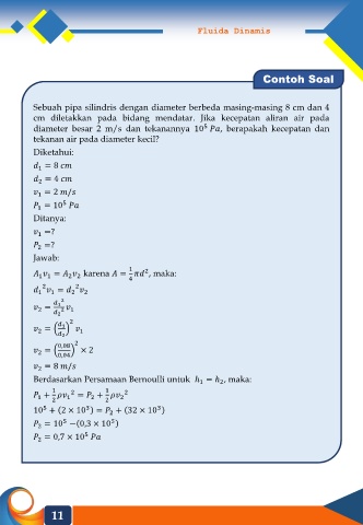 diameter besar 2 m/s dan tekanannya 10 , berapakah kecepatan dan