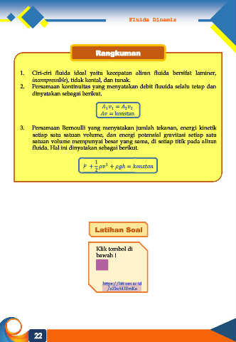 1. Ciri-ciri fluida ideal yaitu kecepatan aliran fluida bersifat laminer,