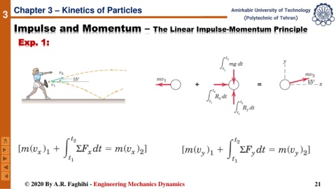3 Chapter 3 – Kinetics of Particles Impulse and Momentum – The Linear Impulse-Momentum Principle Exp. 1: © 2020 By A.R. Faghihi - Engineering Mechanics Dynamics 21