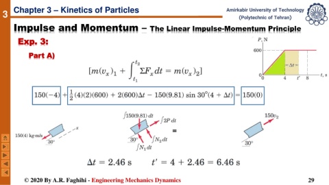 3 Chapter 3 – Kinetics of Particles Impulse and Momentum – The Linear Impulse-Momentum Principle Exp. 3: Part A) © 2020 By A.R. Faghihi - Engineering Mechanics Dynamics 29