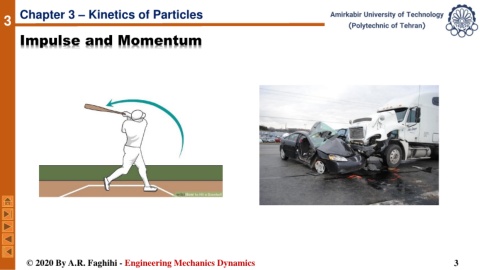 3 Chapter 3 – Kinetics of Particles Impulse and Momentum © 2020 By A.R. Faghihi - Engineering Mechanics Dynamics 3