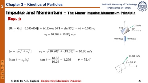 3 Chapter 3 – Kinetics of Particles Impulse and Momentum – The Linear Impulse-Momentum Principle Exp. 4: © 2020 By A.R. Faghihi - Engineering Mechanics Dynamics 33