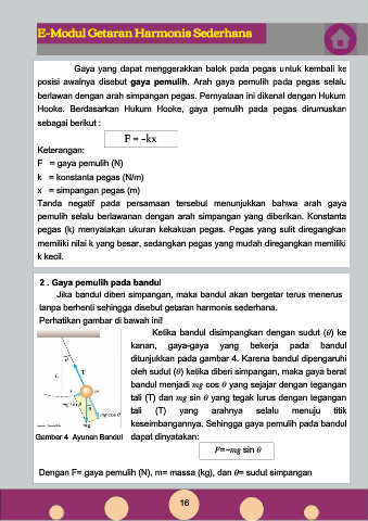 Dengan F= gaya pemulih (N), m= massa (kg), dan = sudut simpangan