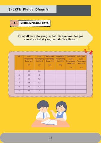 E-LKPD Fluida Dinamis 1 4 MENGUMPULKAN DATA Kumpulkan data yang sudah didapatkan dengan menekan tabel yang sudah disediakan! 11
