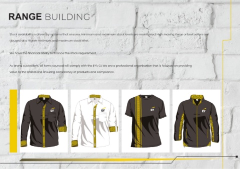 As brand custodians, all items sourced will comply with the EY’s CI. We are a professional organisation that is focused on providing