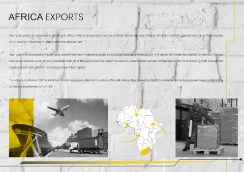 We have the necessary import and export licenses in place in order to conduct business throughout the whole of Africa. We export to various African