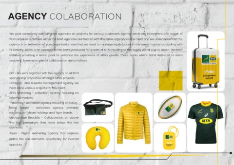 EY directly. Below is an example fo the items produced for guests of MTN traveling to the Rugby World Cup in Japan. The brief