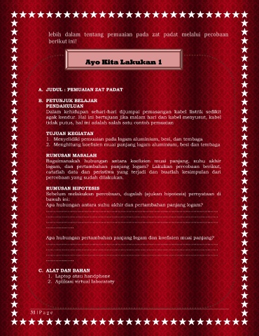 1. Menyelidiki pemuaian pada logam aluminium, besi, dan tembaga