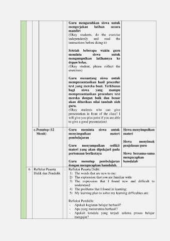 c. Penutup (12 : Guru meminta siswa untuk Siswa menyimpulkan