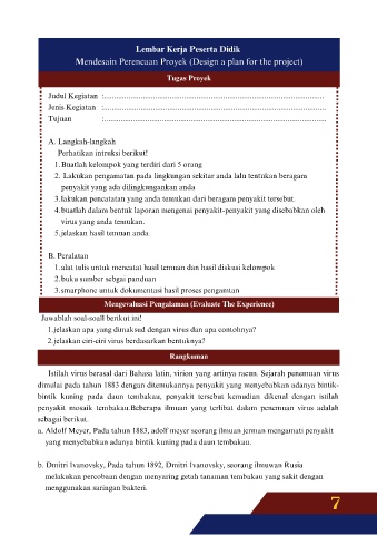 penyakit mosaik tembakau.Beberapa ilmuan yang terlibat dalam penemuan virus adalah