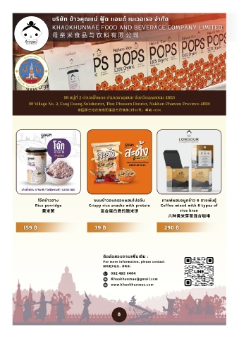 โจ กข าวฮาง         ขนมข าวอบกรอบผสมโปรตีน  กาแฟผสมจมูกข าว 6 สายพันธุ