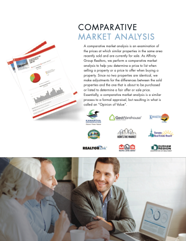 A comparative market analysis is an examination of the prices at which similar properties in the same area recently sold and are currently for sale. As Affinity Group Realtors, we perform a comparative market analysis to help you determine a price to list when selling a property or a price to offer when buying a property. Since no two properties are identical, we make adjustments for the differences between the sold properties and the one that is about to be purchased or listed to determine a fair offer or sale price. Essentially, a comparative market analysis is a similar process to a formal appraisal, but resulting in what is called an “Opinion of Value”.