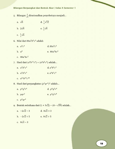9.  Bentuk sederhana dari (1 + 3√2) − (4 − √50) adalah…