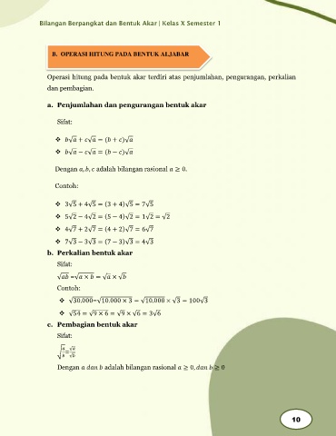 Operasi hitung pada bentuk akar terdiri atas penjumlahan, pengurangan, perkalian