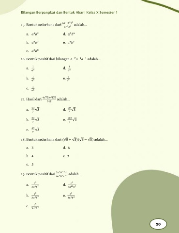 18. Bentuk sederhana dari (√8 + √5)(√8 − √5) adalah…