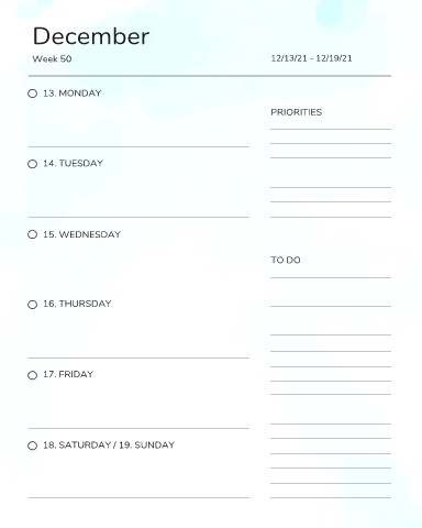 Week 50                                                          12/13/21 - 12/19/21