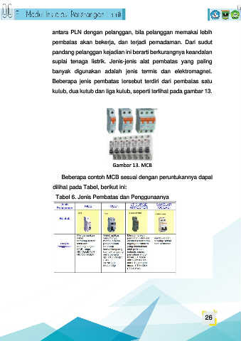 Beberapa contoh MCB sesuai dengan peruntukannya dapat