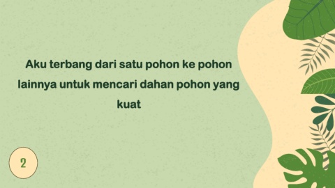 Aku terbang dari satu pohon ke pohon lainnya untuk mencari dahan pohon yang kuat 2