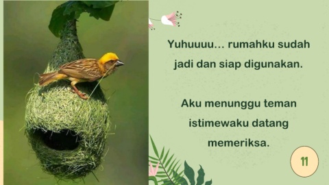 Yuhuuuu… rumahku sudah jadi dan siap digunakan. Aku menunggu teman istimewaku datang memeriksa. 11
